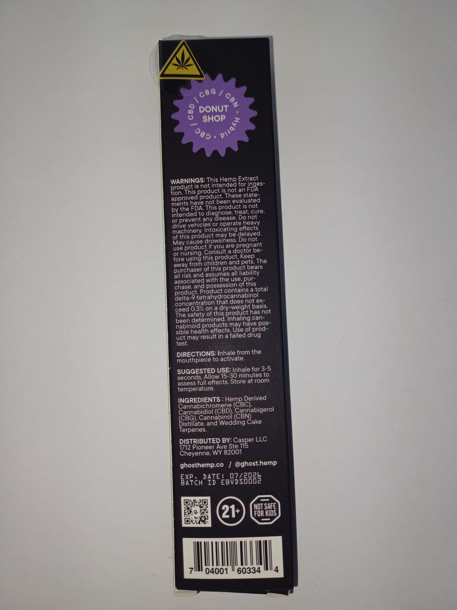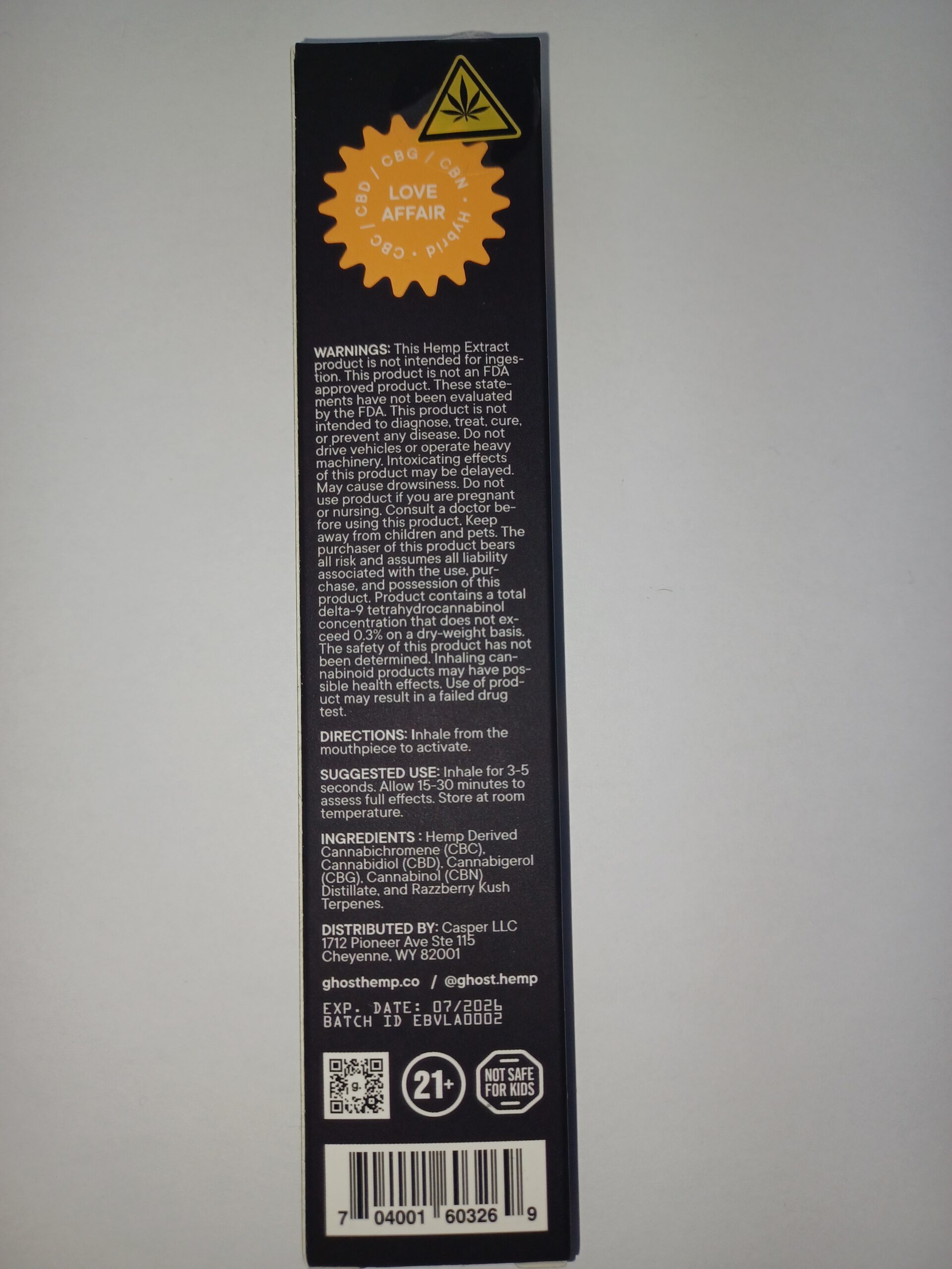 Suggested Use: Inhale for 3-5 seconds. Allow 15-3- minutes to assess full effects. Store at room temperature.